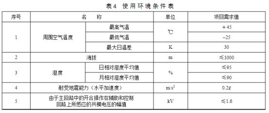 4運(yùn)用環(huán)境條件表低壓電纜分支箱運(yùn)用環(huán)境條件見表4。特別環(huán)境要求依據(jù)項(xiàng)目狀況進(jìn)行編制。